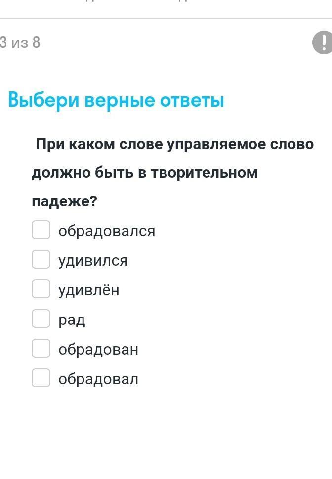 Ответ:Удивлён (чем?), обрадован (чем?), обрадовал (чем?)
