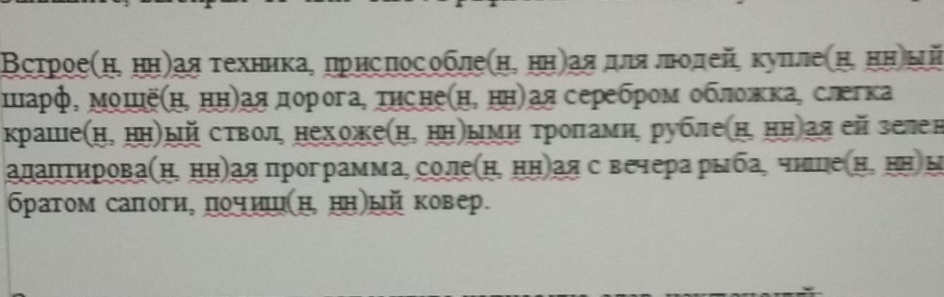 встроенная, приспособленная, купленный шарф, мощëная дорога, тисненная, карашенный, нехожеными, рубленная, адаптированная, соленная с вечера, чищенные, почищиный.