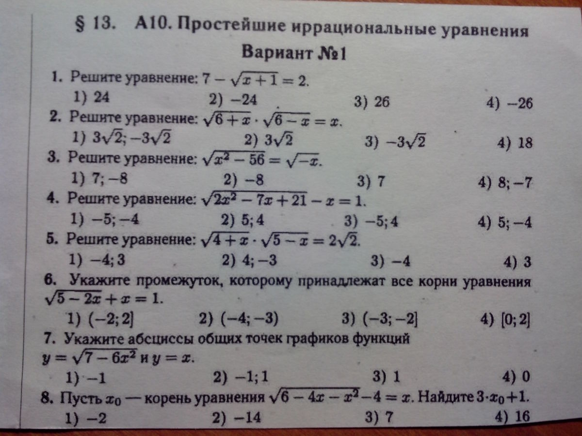 Простейшие иррациональные уравнения. Помогите решить хотя бы несколько уравнений. НО, чтобы я решение видел) пожалуйста