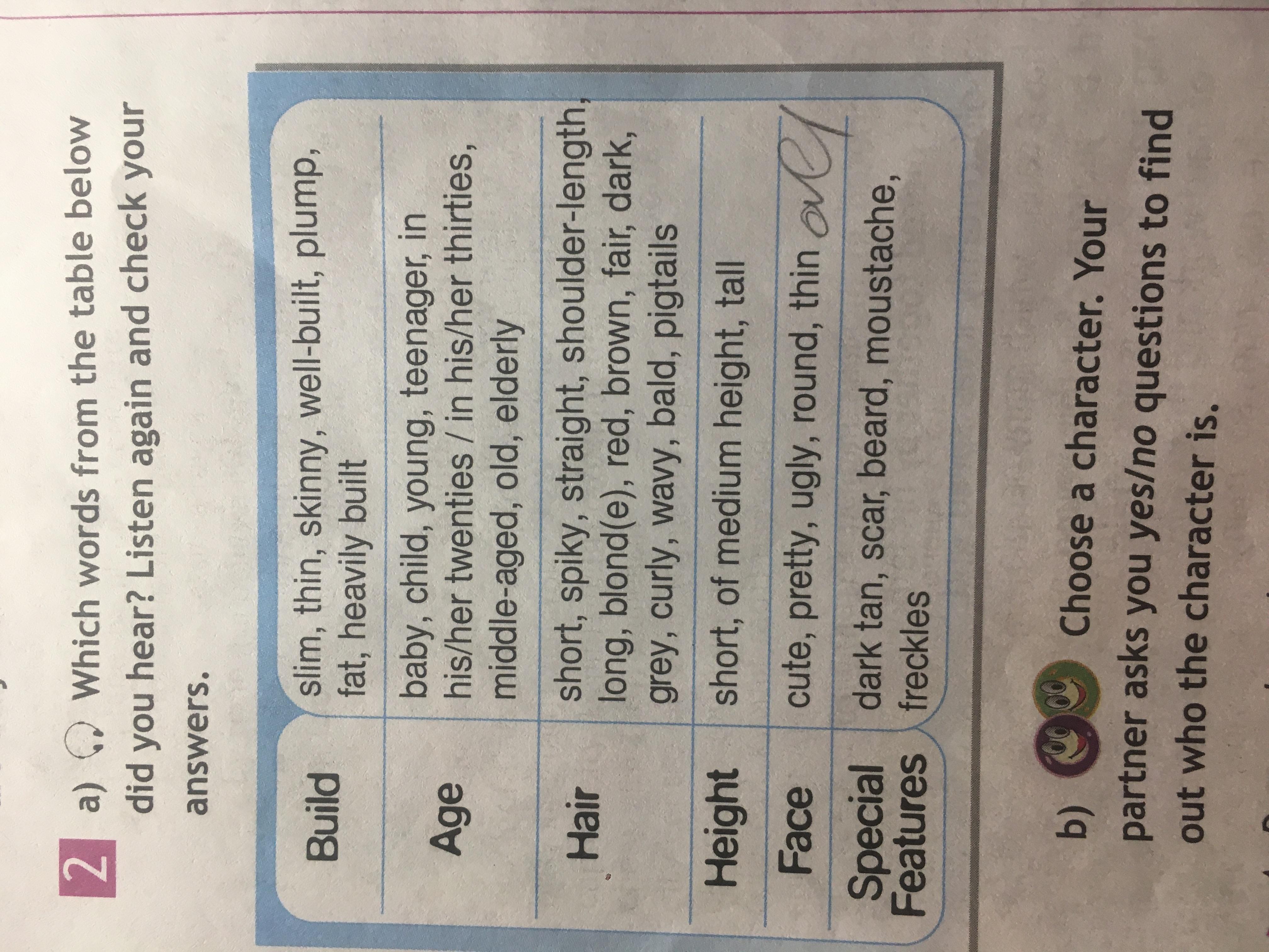 5. Dorothy is a young slim woman. She has got long red straight hair, but she isn't tall. Her face is thin and she looks tricky (хитрая). She hasn't got any special features.