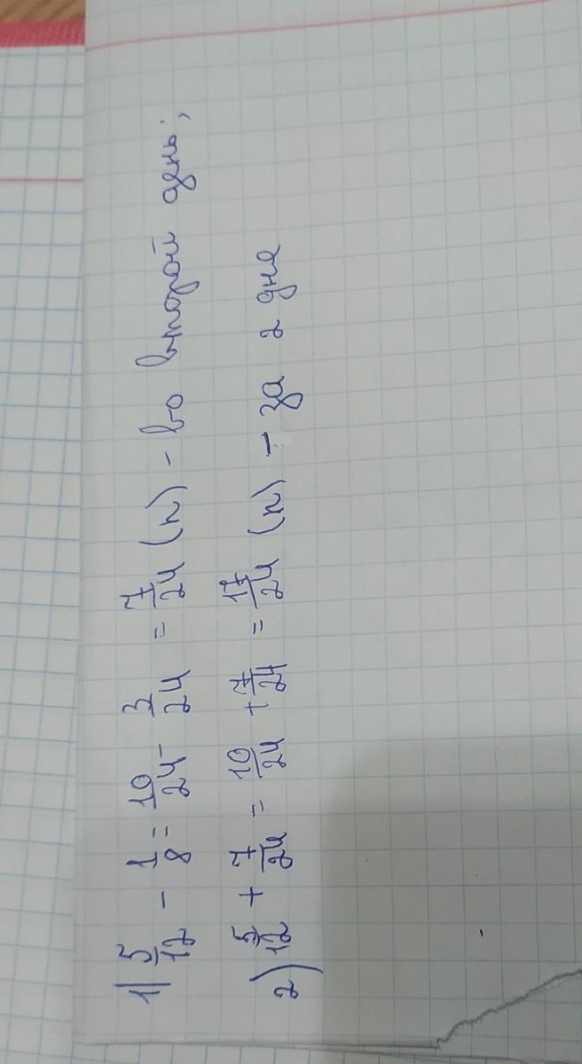 1) 5/12 - 1/8 = 10/24 - 3/24 = 7/24 (пути )- прошёл во второй день