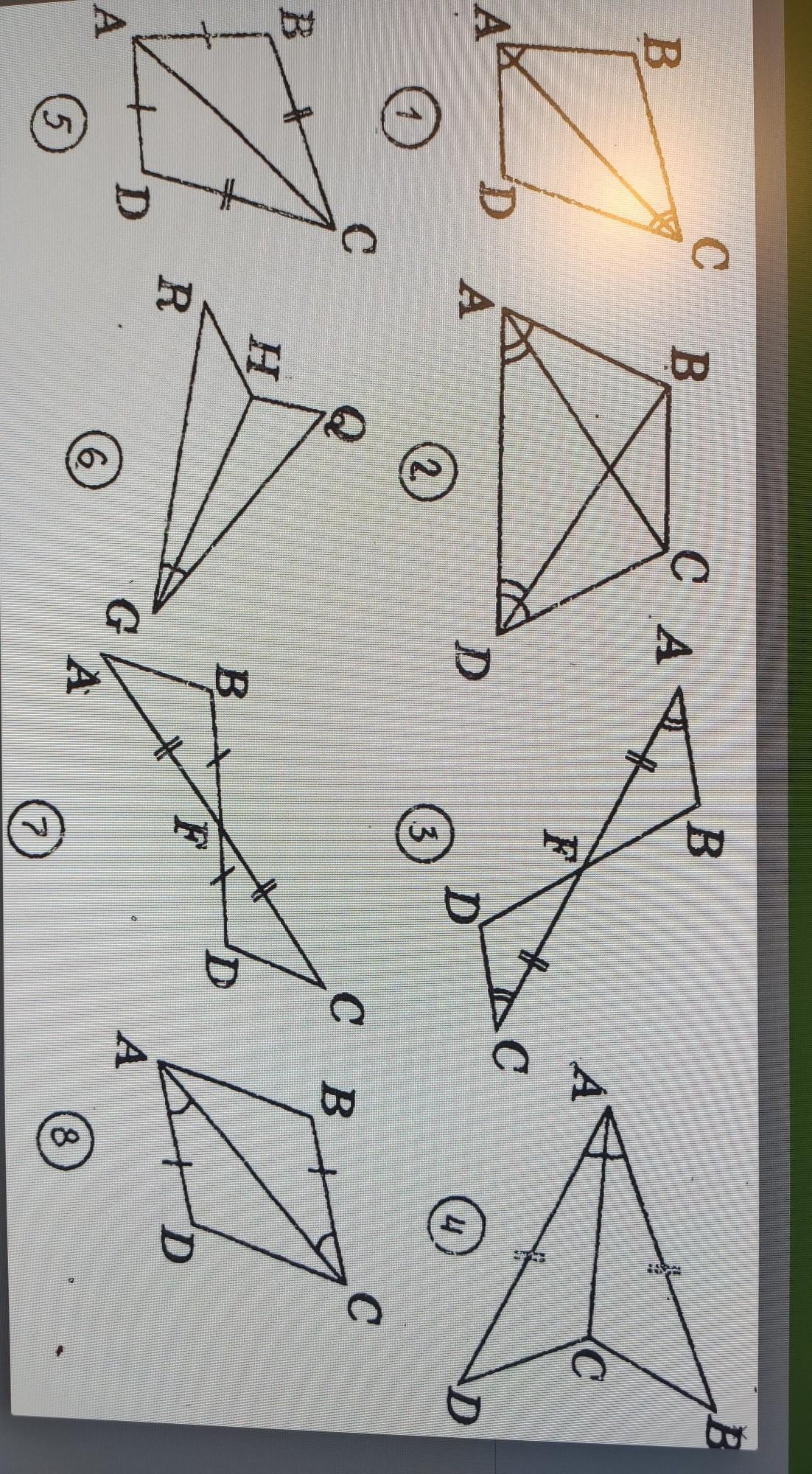 1) угол BAC=угол угол DAC,угол BCA= углу DCA 2)угол CAD=углу BDA,угол CAB=углу CDB 3)AF=FC,угол C= уголу 4)AD=AB,угол