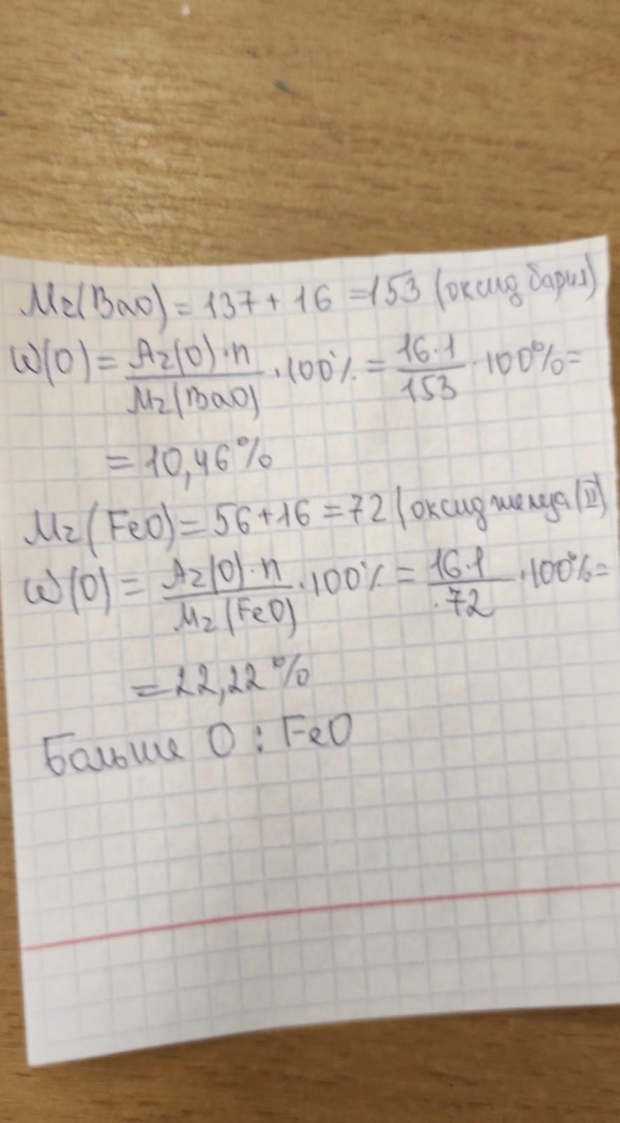 рассчитайте, в каком из двух оксидов BaO и FeO больше содержится кислорода. Дайте название каждому из этих веществ.