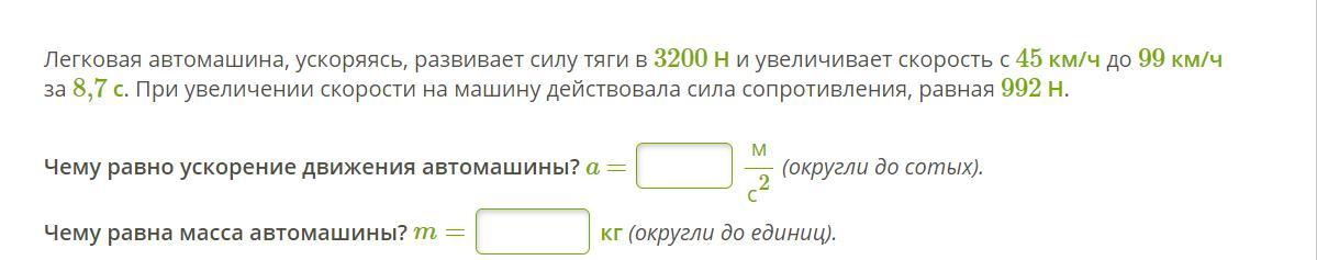 a=(V2-V1) / t = (27,5 - 12,5) / 8,7 = = 1,7 м/с^2