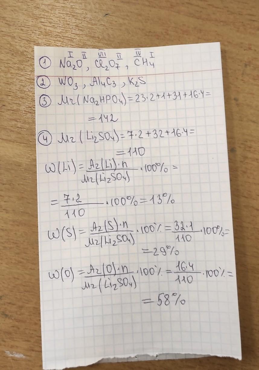 4.Рассчитайте массовые доли (%) элементов в сульфате лития (Li2SO4).