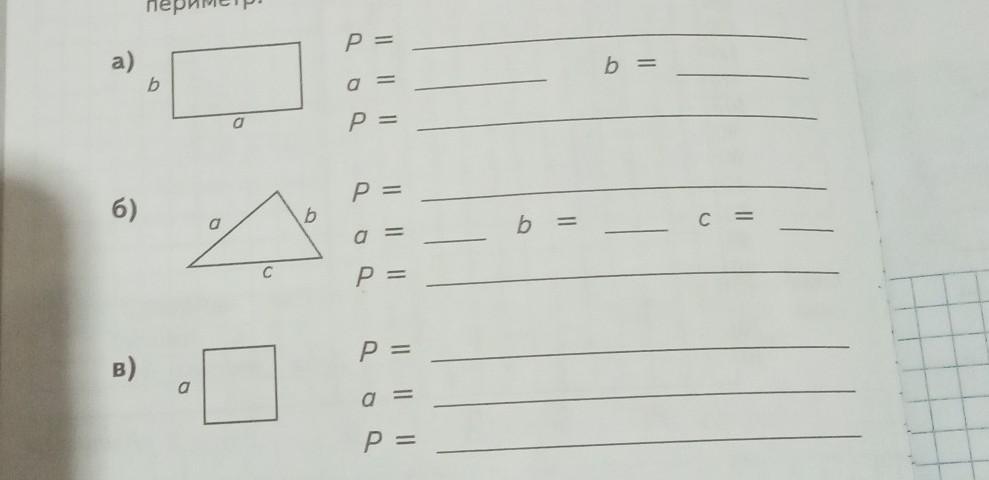 Скажи пожалуйста стороны фигур, без этих данный нельзя ответить на 2 и 3 строчки