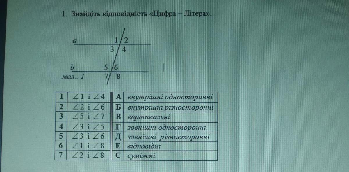 1-В 2-Е 3-Є 4-А 5-Б 6-Д 7-Г