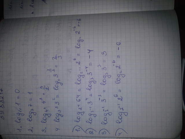 1.log11 1; 2.log7 7; 3.log16 64; 4.log27 9