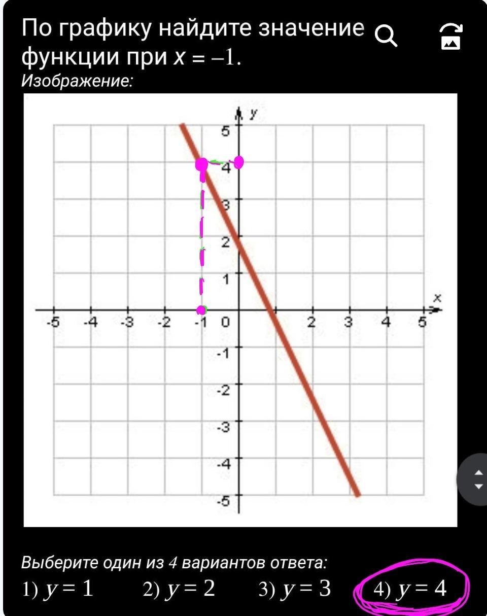 Отмечаем на оси Х точку равную -1.Находим пересечение с прямой функции.Смотрим на каком значении оси У находится точка пересечения.