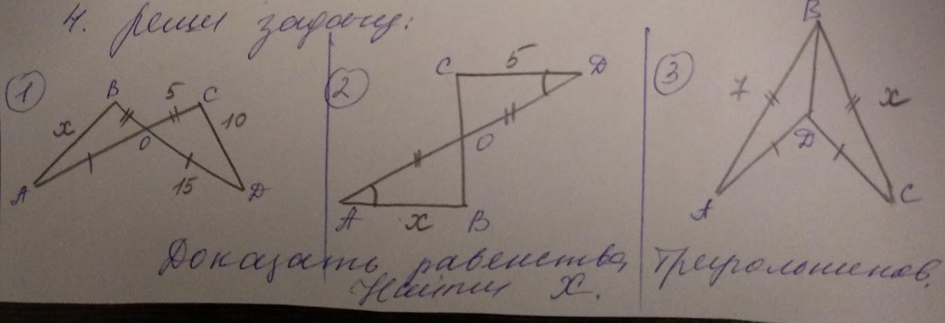 3. Данные треугольники равны, следовательно BO = CO = 5см, AO = OD = 15см, AB = CD = 10см;