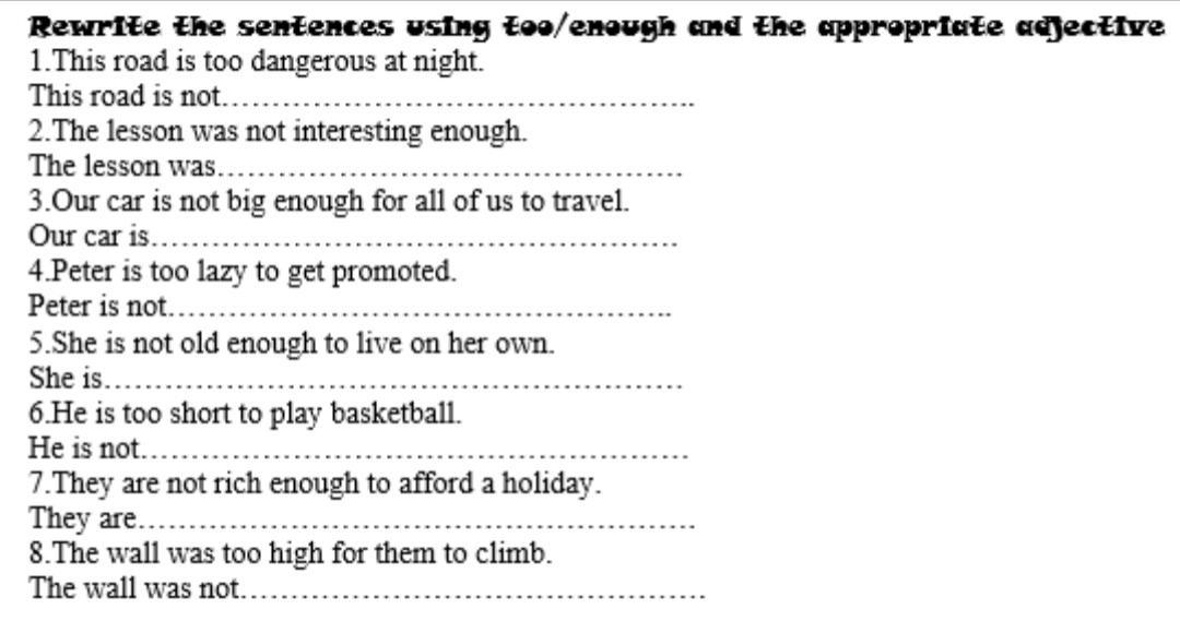 - Our car is too big enough for all of us to travel.