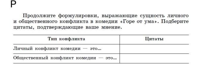 В пьесе присутствуют два конфликта: любовный (между Чацким и Софьей) и общественный (между Чацким и фамусовским обществом)