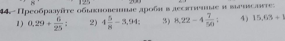 Чтобы обыкновенные дроби перевести в десятичные, нужно числитель разделить на знаменатель, получается переводим мы так: