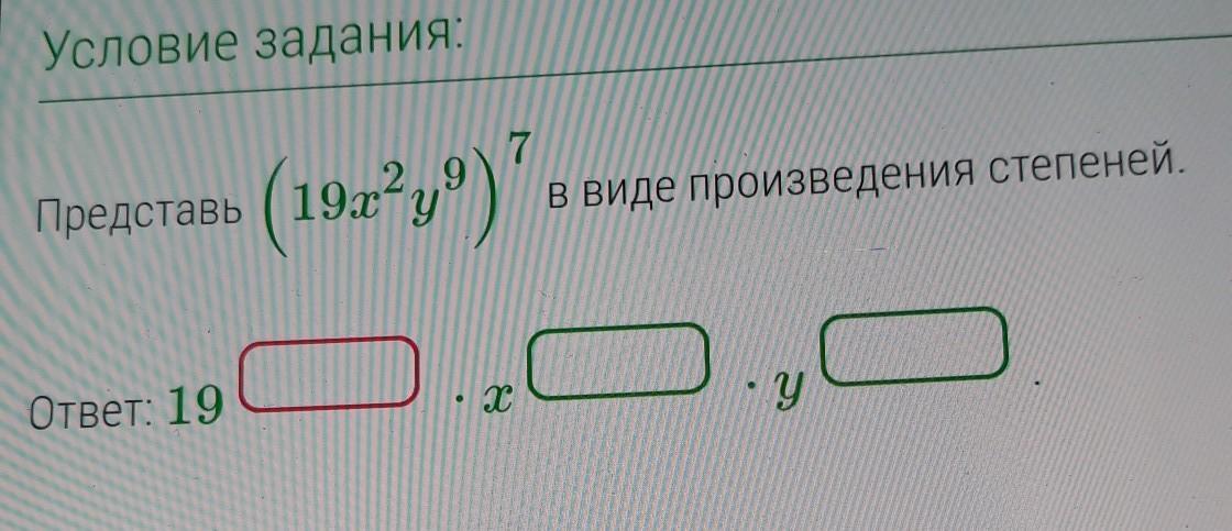 19⁷х⁽²°⁷⁾у⁽⁹°⁷⁾=19⁷х¹⁴⁾у⁶³
