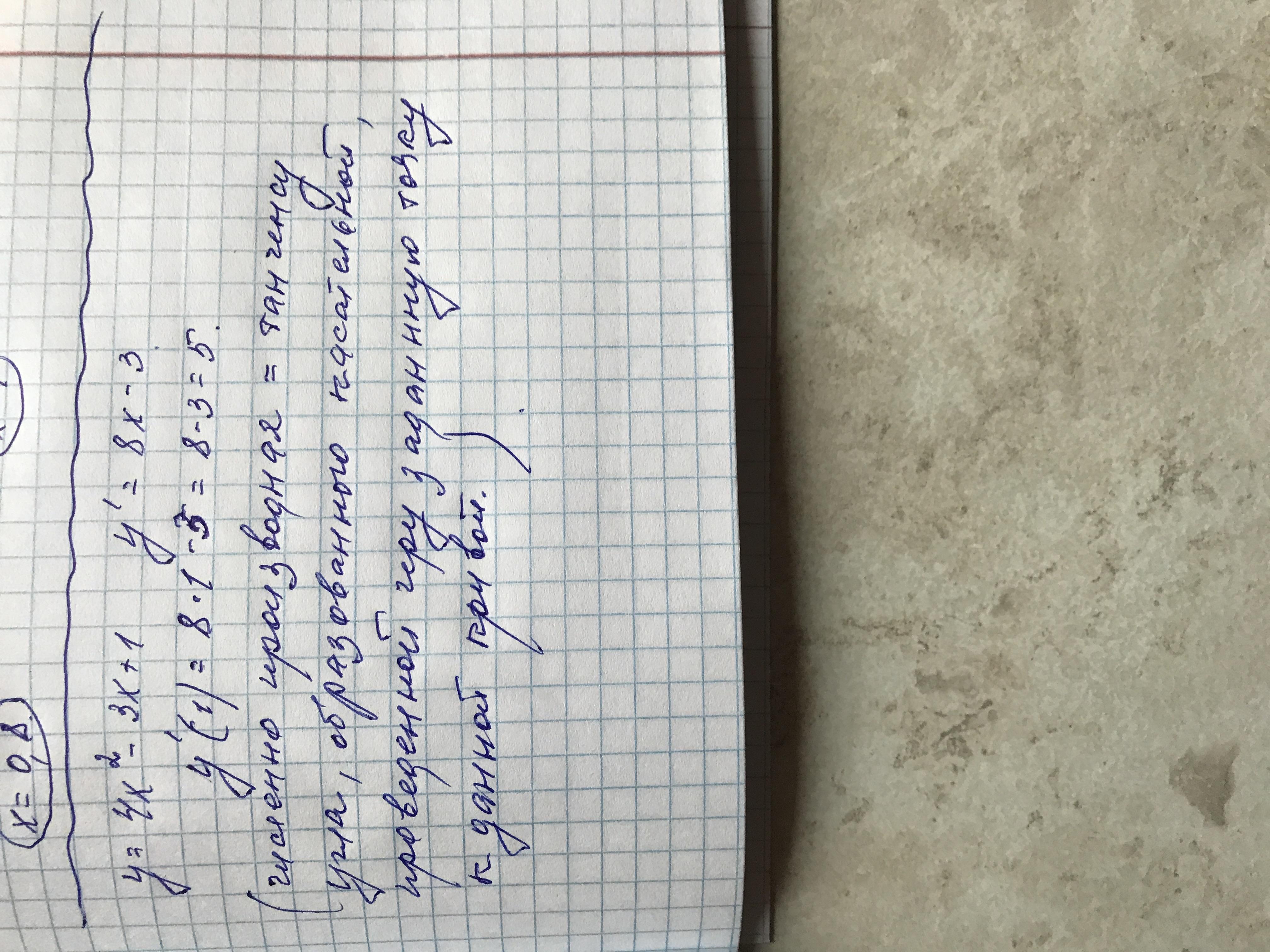 В точке х0=1 касательная к параболе у=4х2-3х+1 имеет угловой коэффициент, равный