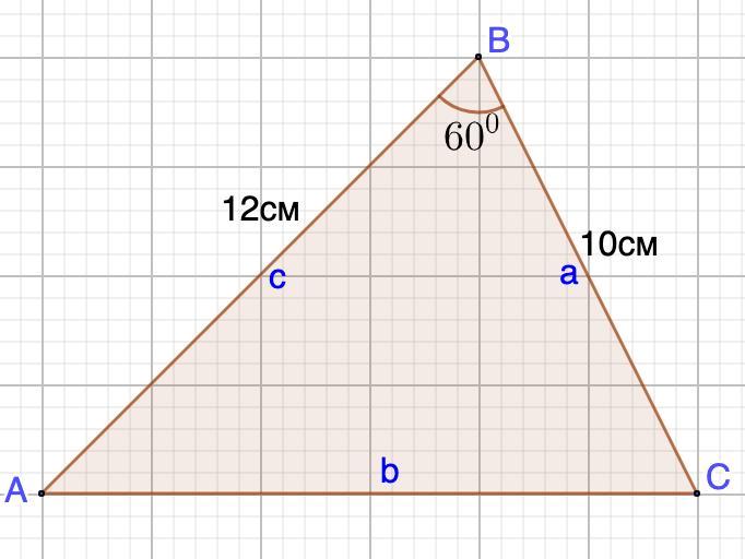 знайдіть невідомі сторони й кути трикутника ABC,якщо AB=12см BC=10см, кут B=60градусів срочно ответ