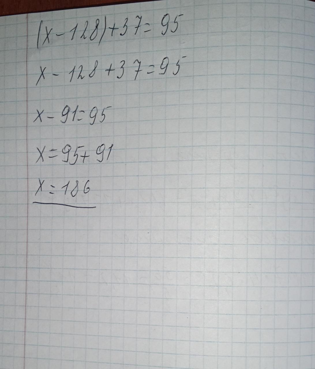 x-128+37=95