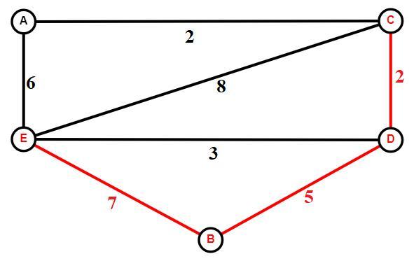E - B - D - C = EB + BD + DC = 7 + 5 + 2 = 14