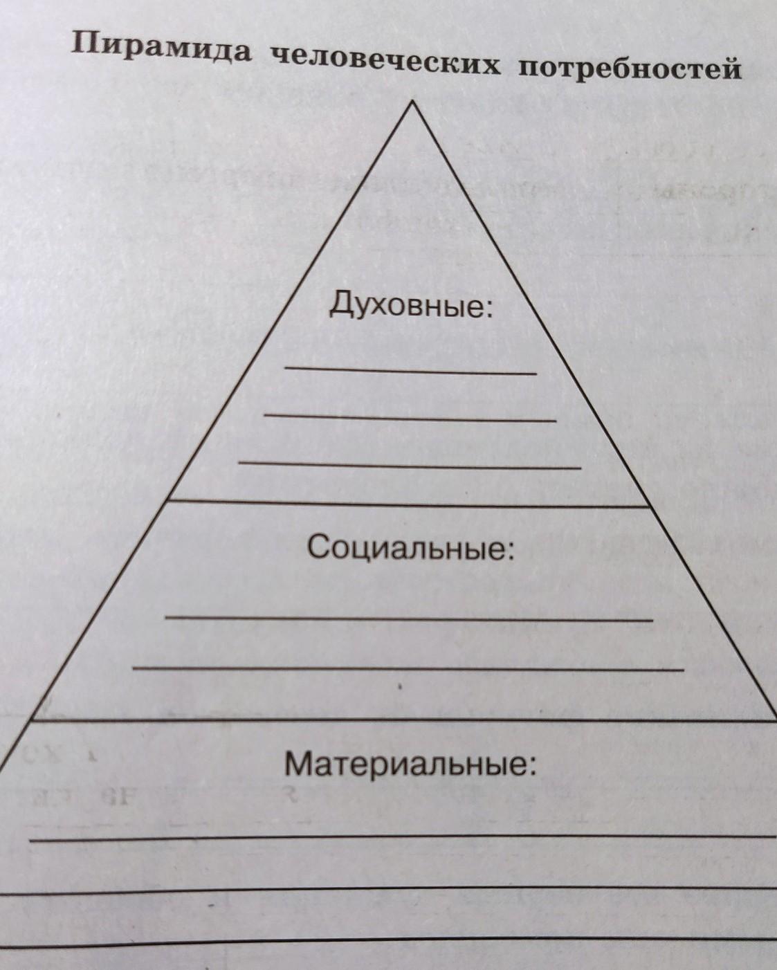 7. Рассмотрите рисунок, заполните пирамиду потребностей собственными примерами.