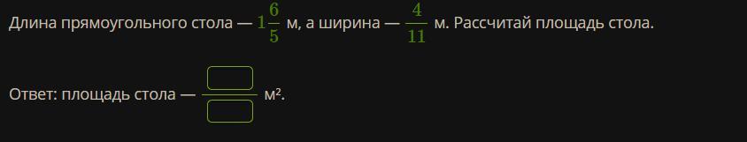 S = 1 6/5 * 4/11 = 11/5 * 4/11 = 4/5 м2