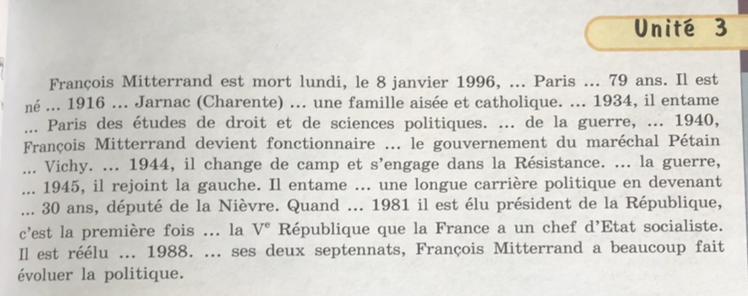 à Paris,à 79 ans, en1916,à Jarnac, dans une famille, en 1934, à Paris, au commencement de la guerre, en 1940, dans le gouvernement, à Vichy, en 1944, après la guerre, en 1945, à 30 ans, en 1981, pendant la 5 République, en 1988, au cours.