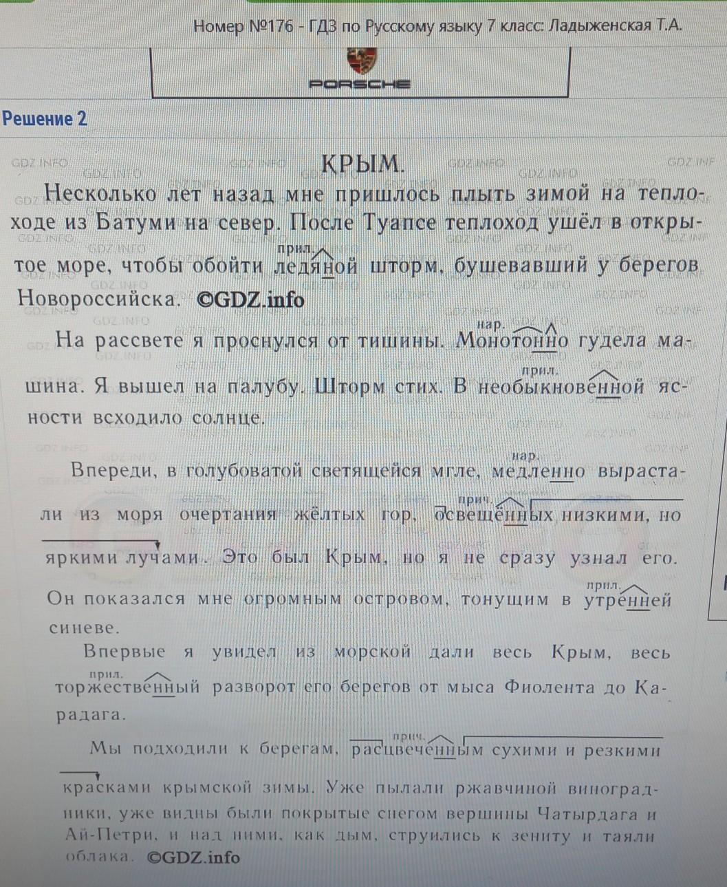 Причастия: открытое, бушевавший, освещённых, тонущим, расцвеченным, покрытые.