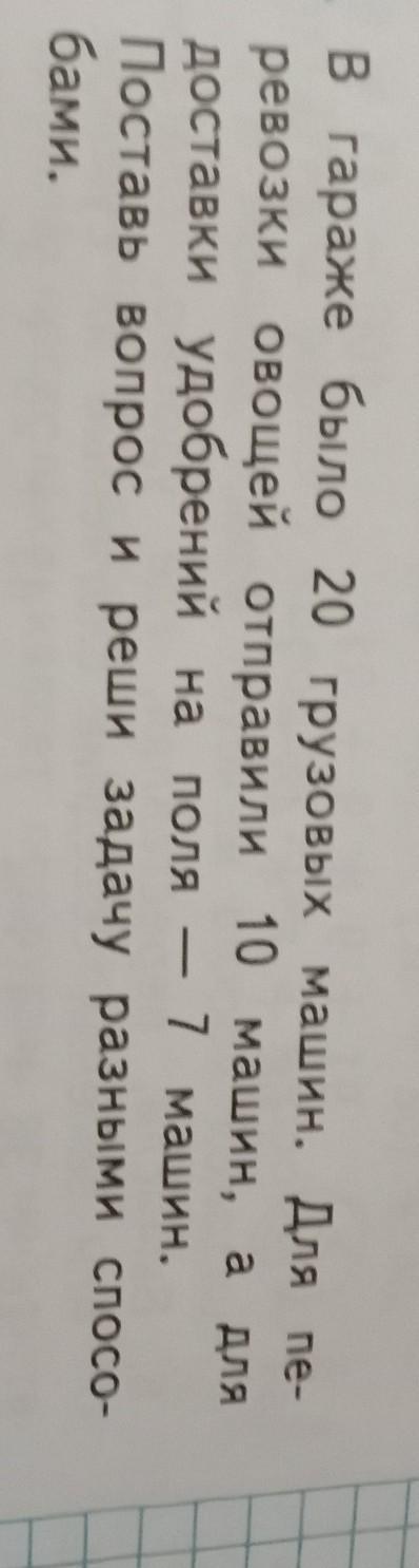 ОТВЕТ: 1 способ:1) 10+7 = 17-(машин) - потребовалось.