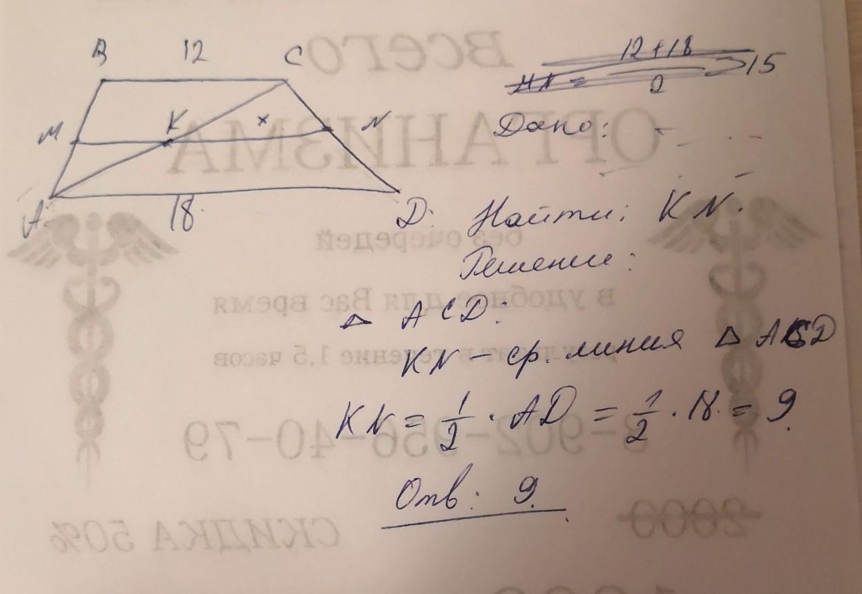 Большая часть средней линии равна 9.