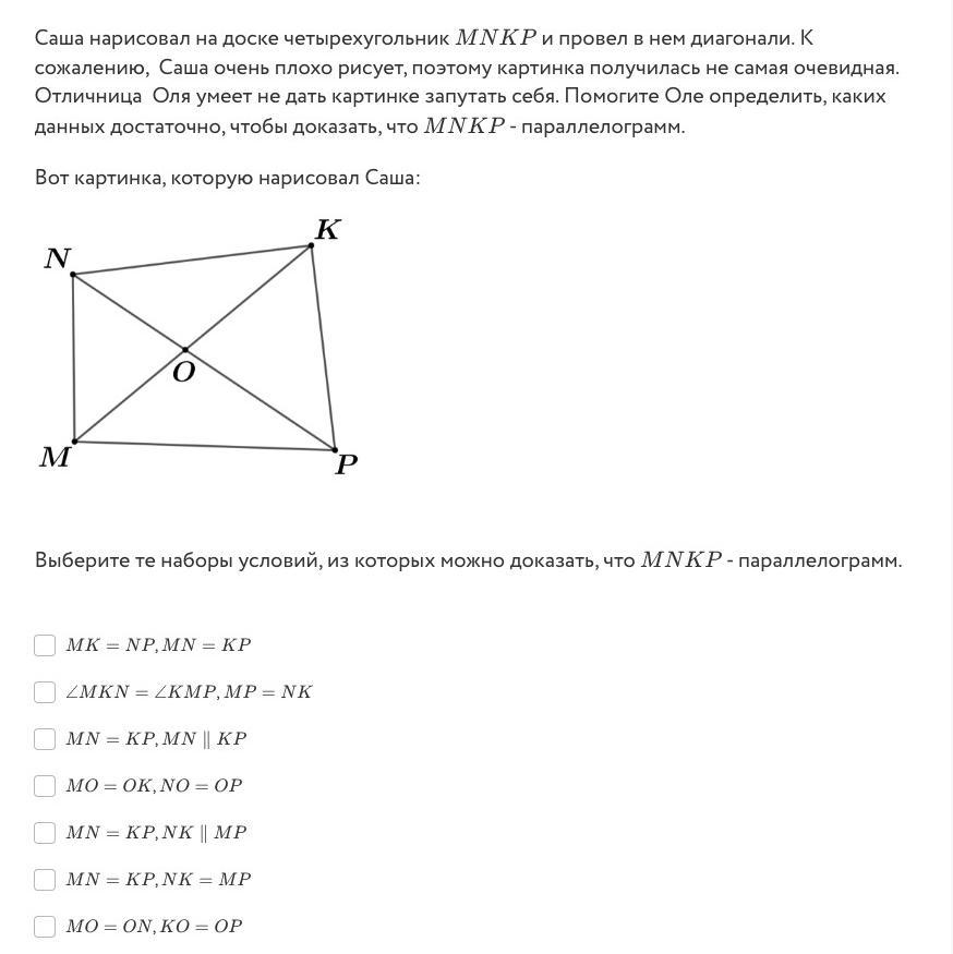 2,4,5,6 це властивості за якими MNKP паралелограм
