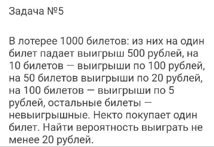 Выигрыш (не менее 20 руб) / 1+10+50=61