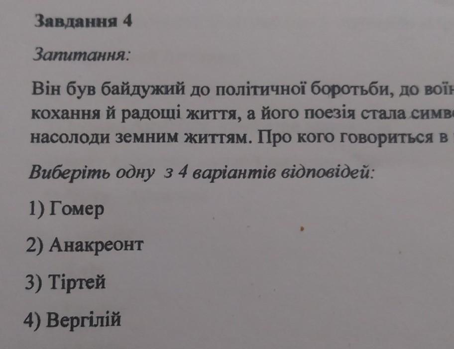 Виберіть одну з 4 варіантів відповідей: