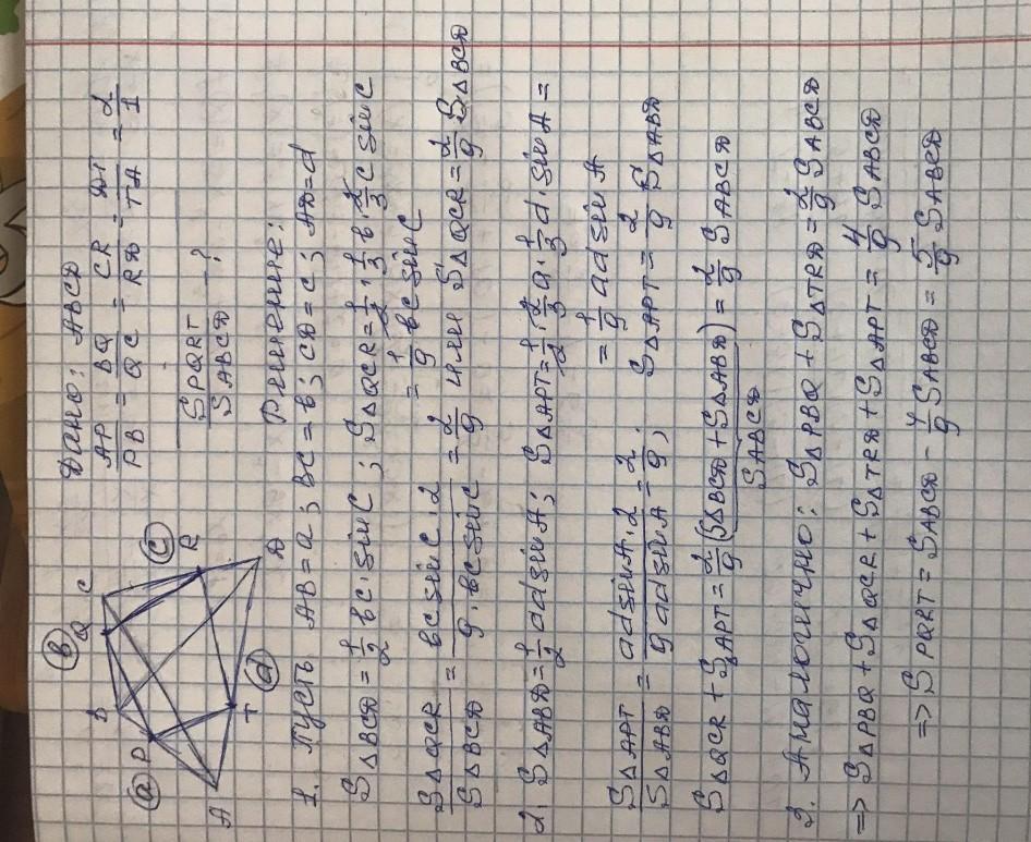 R и T соответственно так, что AP : PB = BQ : QC = CR : RD = DT : AT = 2 : 1. Какую часть