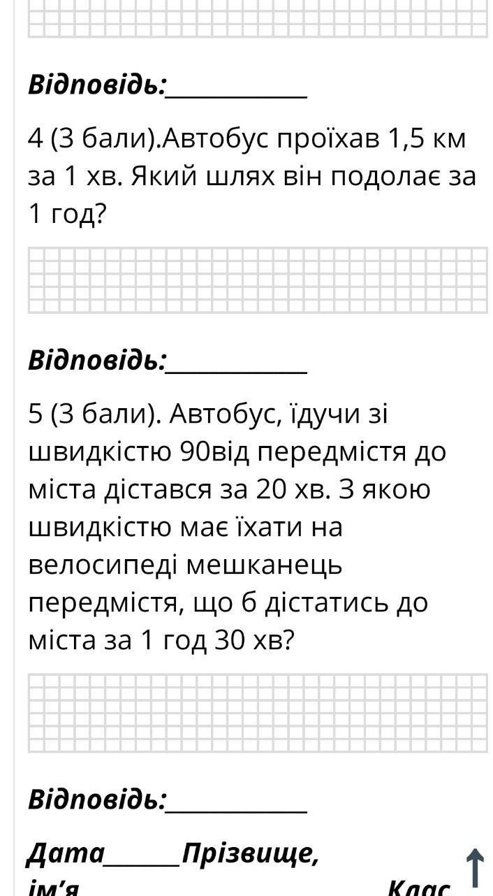 4)якщо за хвилину автобус проїхав 1,5 км то за годину тобто 60хв він проїде 60хв×1,5км=90км