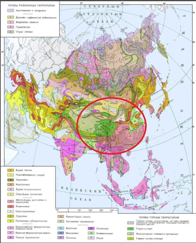 Как видно из карты, которая дана ниже в приложении, в Китае есть следующие виды почв:на востоке в поймах рек аллювиальные, в горных районах горно-луговые, в районах пустынь серо-бурые пустынные, на юго-востоке желто-бурые, желтозёмы и краснозёмы, есть также чернозёмные почвы, глеево-луговые, бурые лесные и лугово-болотные.