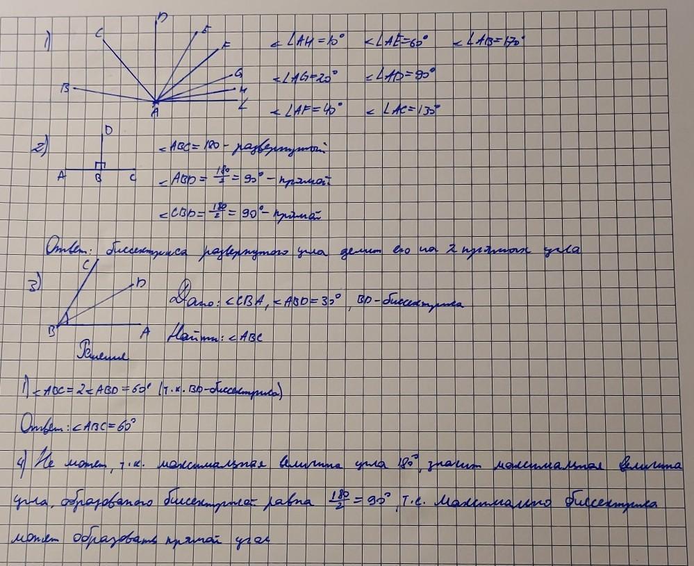 2. Какие углы образует биссектриса развернутого угла с его сторонами?