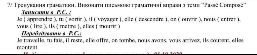 2) j'ai travaillé, tu as fait, il a resté, elle a offert, on a tombé, nous avons eu, vous avez arrivé, ils ont couru, ils ont monté