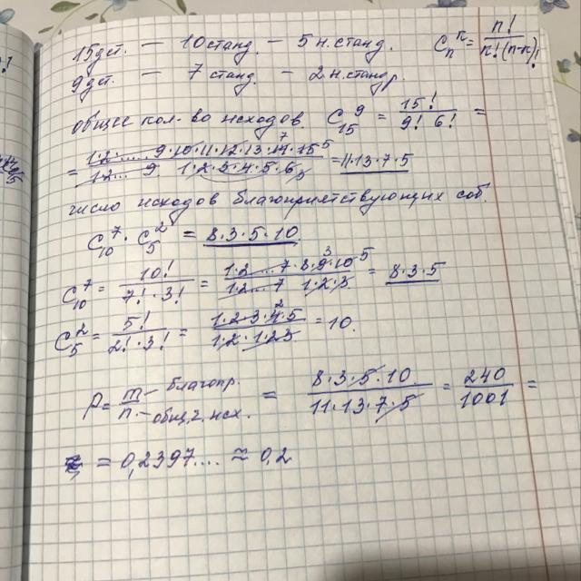 В партии из 15 деталей имеется 10 стандартных. Какова вероятность