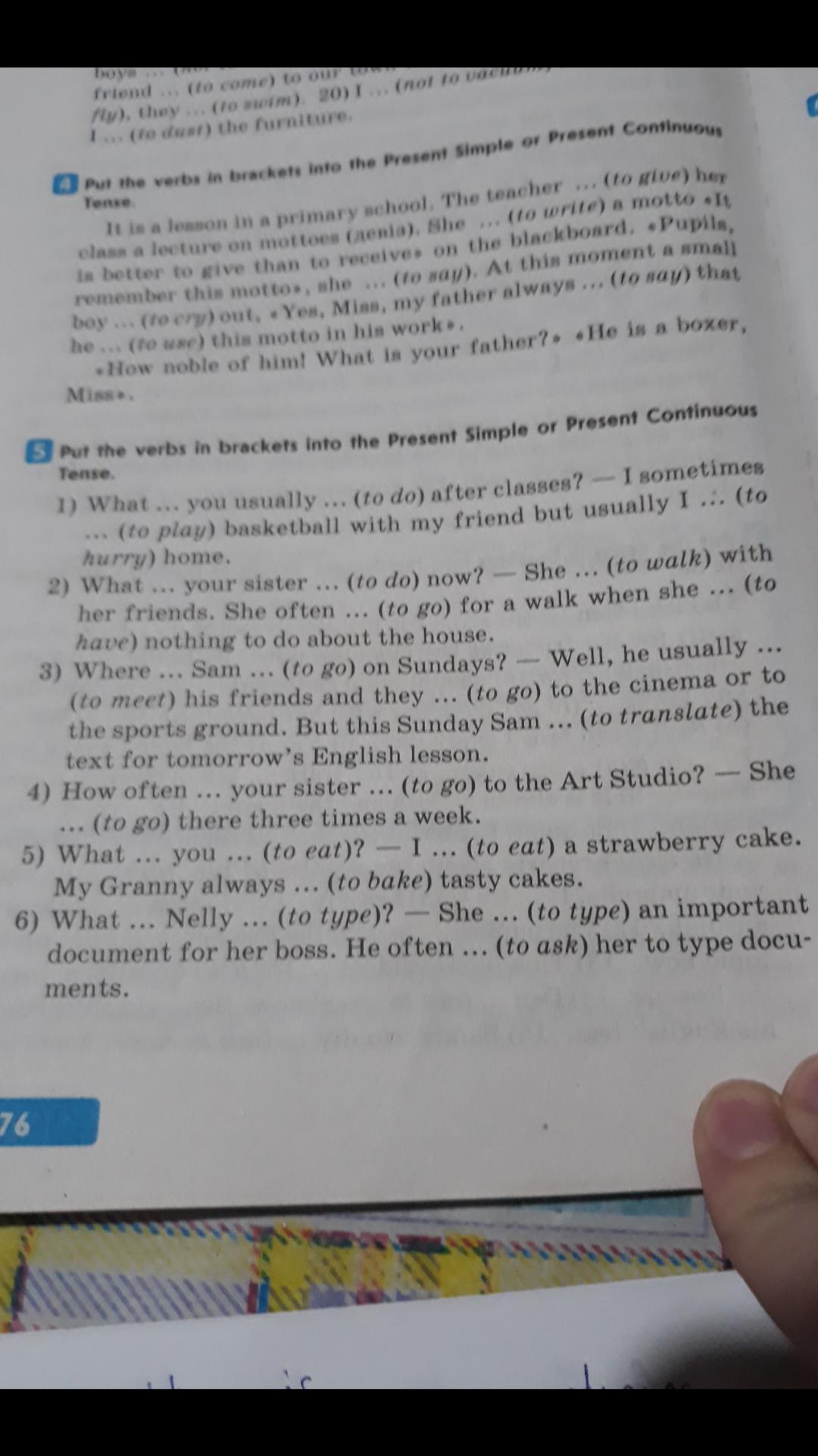 Поместите глаголы в скобки в настоящее простое или настоящее непрерывное время.