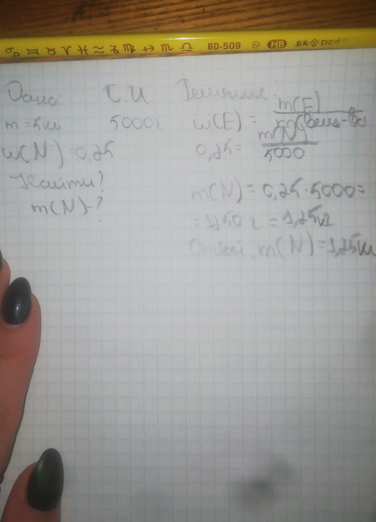 Какая масса азота содержится в азотной кислоте массой 5 килограмм, если массовая доля азота в соединении 0,25? Ответ запишите в килограммах ПОМОГИТЕ ПОЖАЛУЙСТА! прошу очень сильно прошу