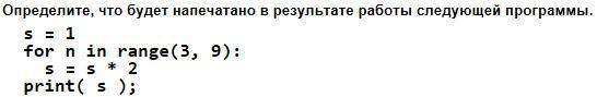 for n in range(3, 9): // Цикл выполняется 6 раз (3, 4, 5, 6, 7, 8)