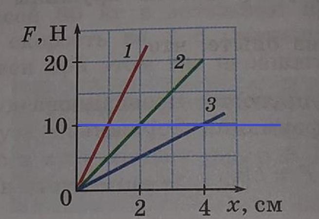 k₁ = F / Δx₁ = 10 / 0,01 = 1 000 Н/м