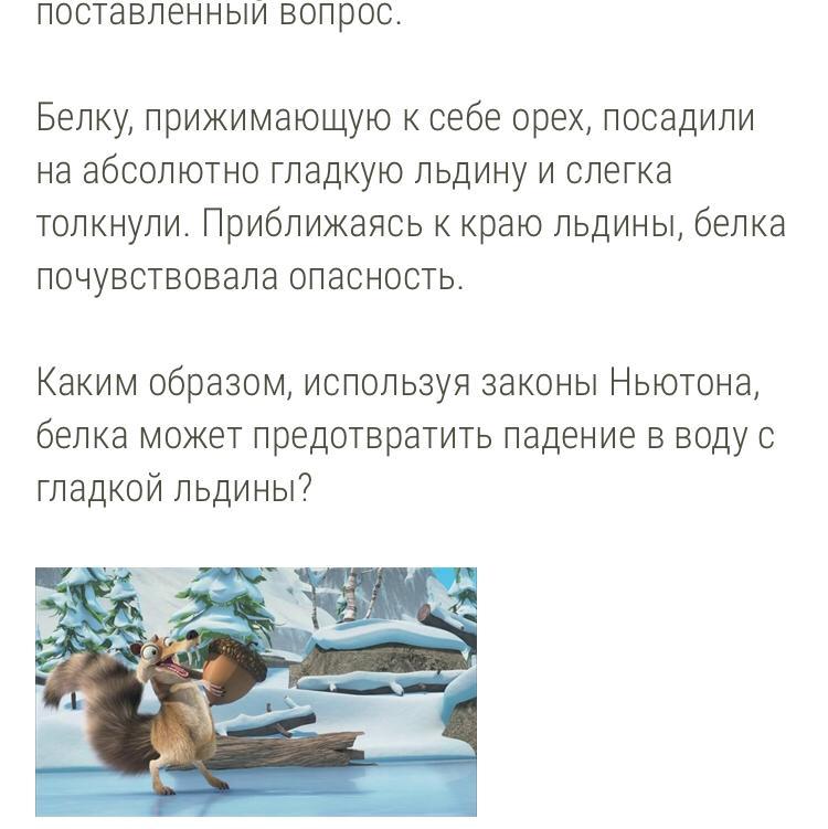 Белке надо бросить орех вперед по 3 закону Ньютона, но....