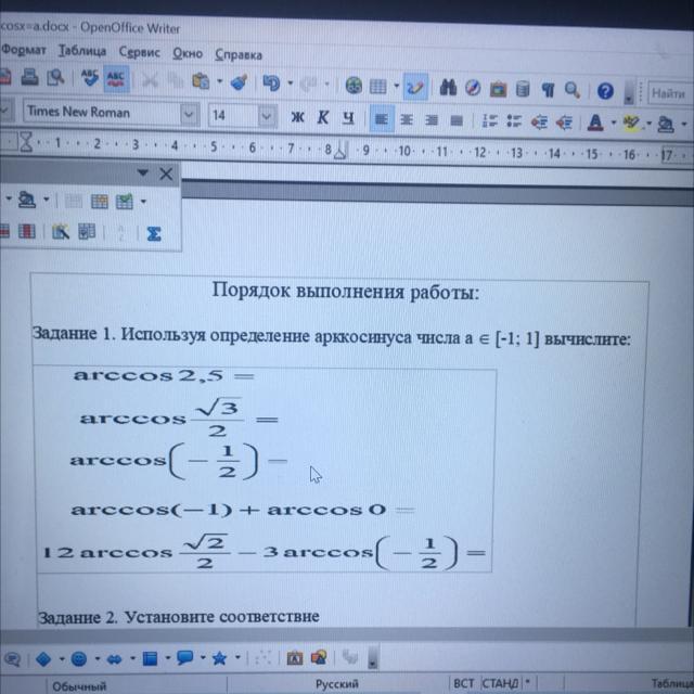 Первый арккосинус не существет,так как косинус НЕ МОЖЕТ быть 2,5