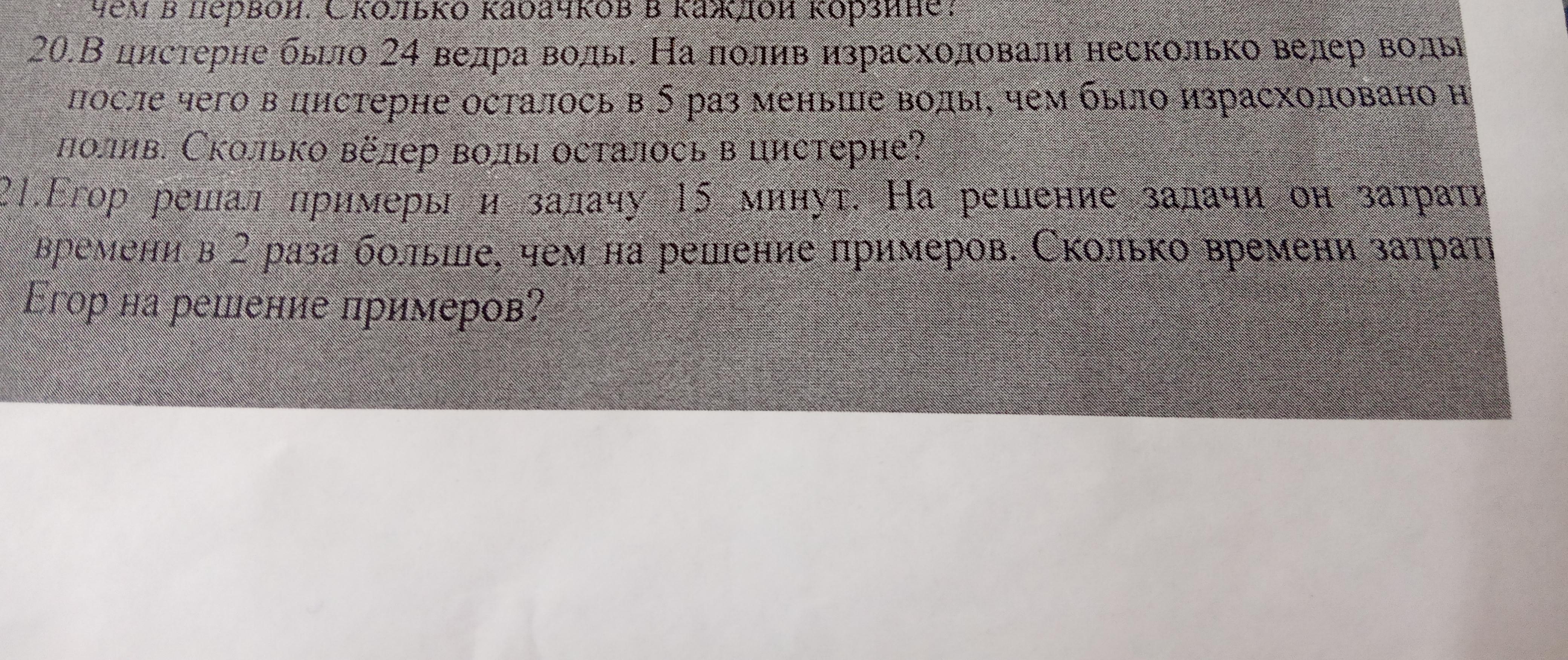 Пошаговое объяснение: 20. Пусть х вёдер воды- осталось, тогда 5х вёдер воды- использовали для полива. Всего в цистерне было 24 ведра воды.