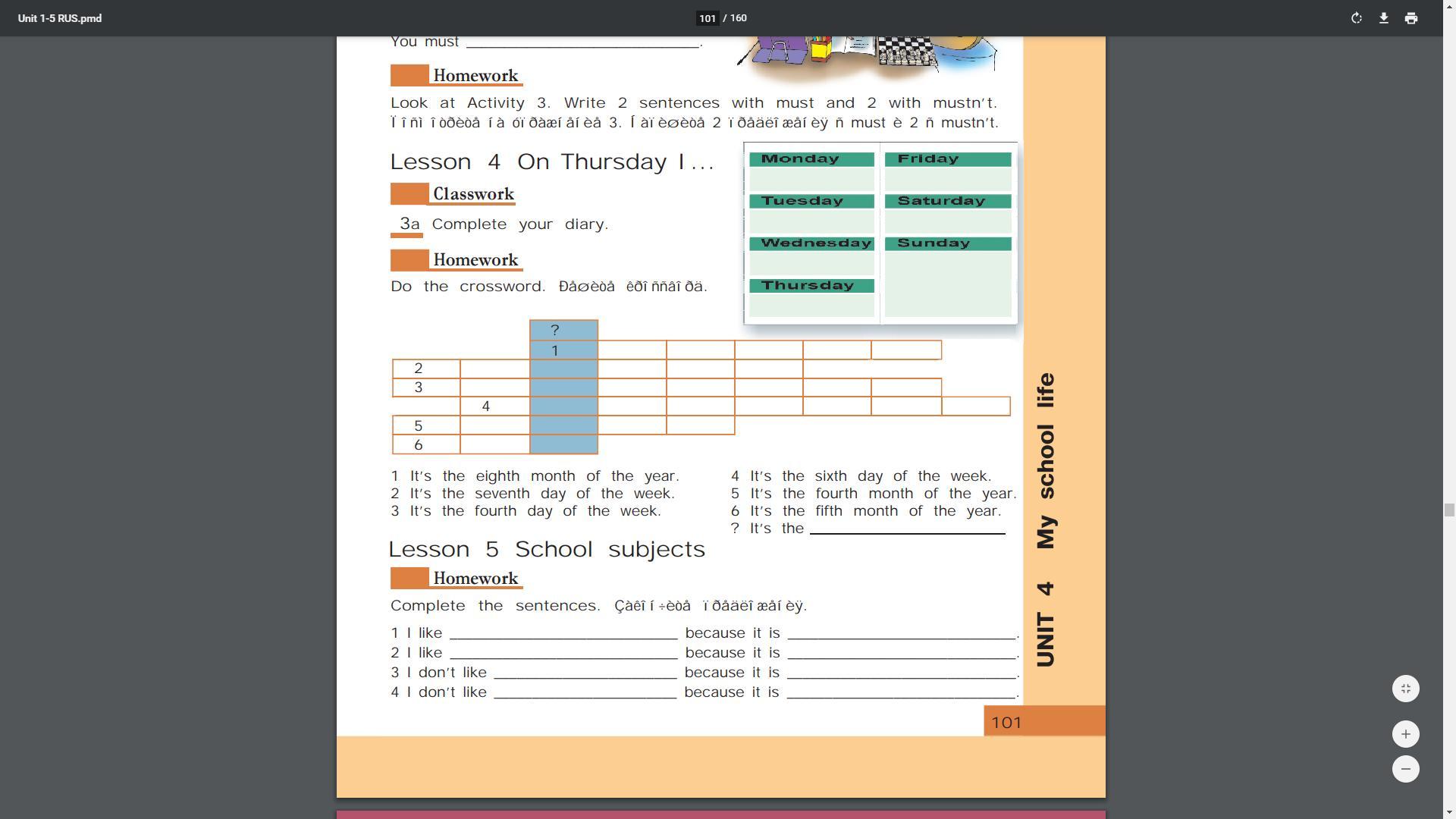 Помогите 5 класс:Lesson-5 homework (закончить предложения используя предметы и прилагательные. Например: I like English, because it is interesting subject)