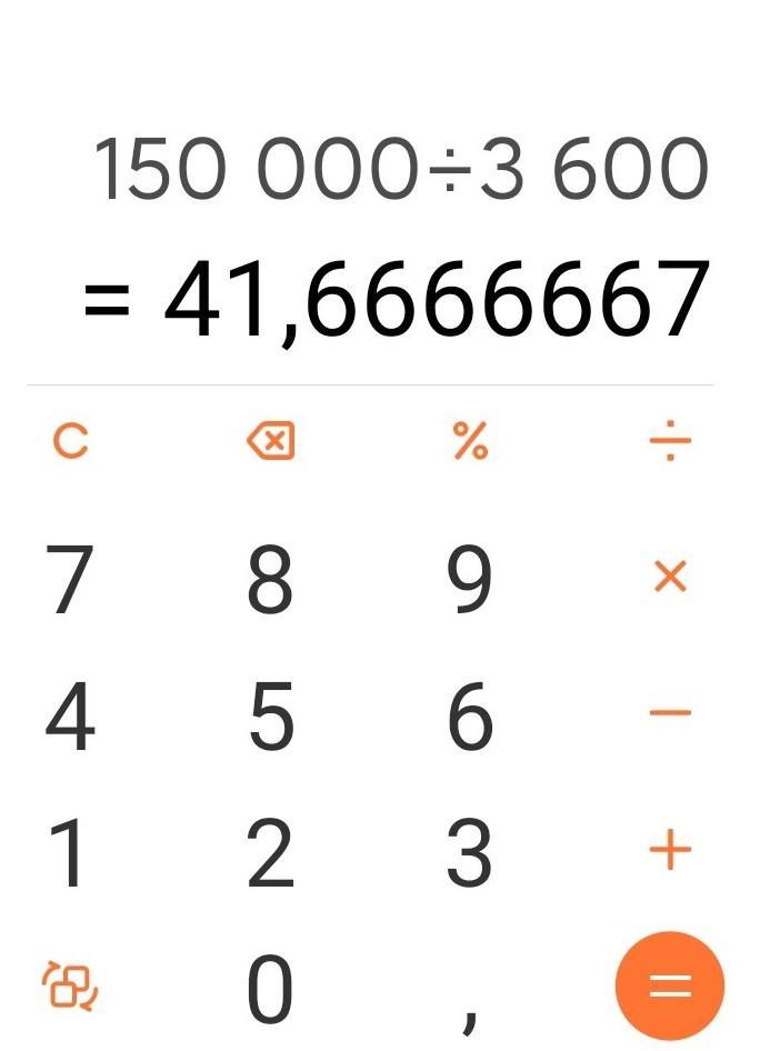 150км/ч = 150 000м/3 600с ≈ 42км/ч ;