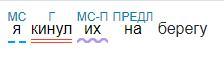 я кинул(сказуемое) их(дополнение) на берегу(обстоятельство)