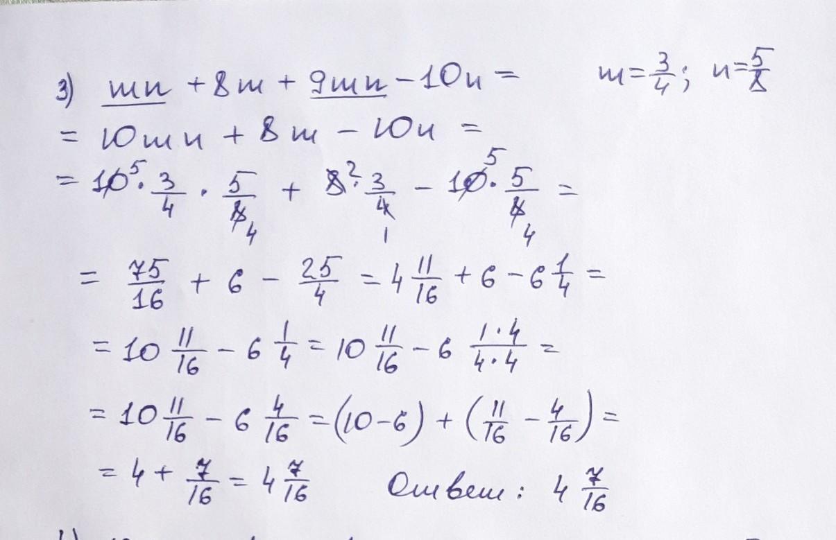 3) mn + 8m + 9mn - 10n при m=3/4; n=5/8;