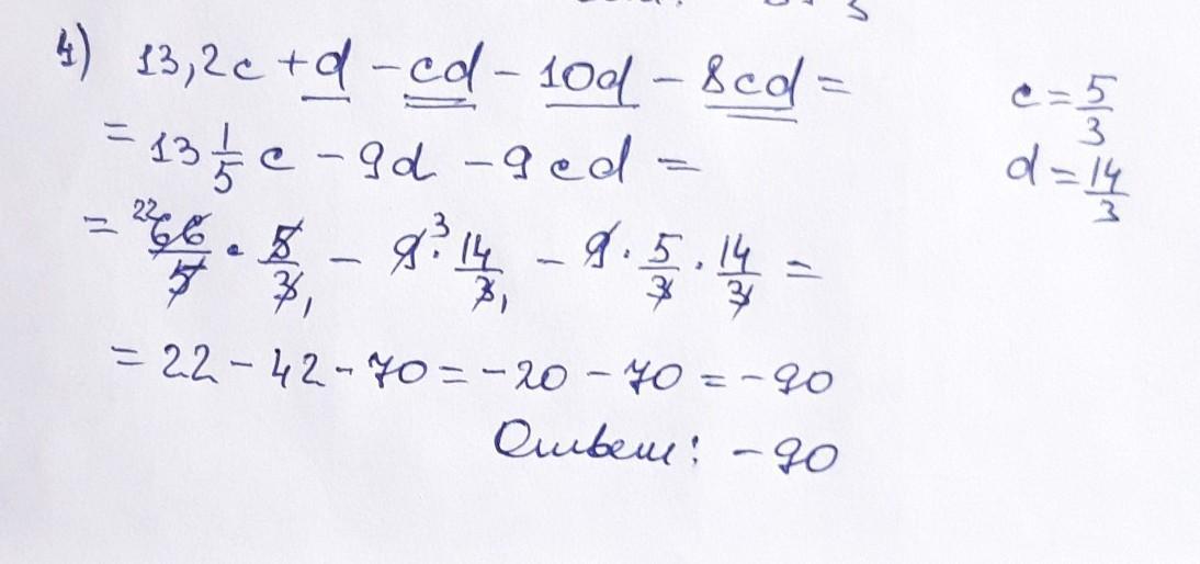 2) 53 - 5,8xy-y+ 4,8xy - 6у при х=4/13; y=13/7;