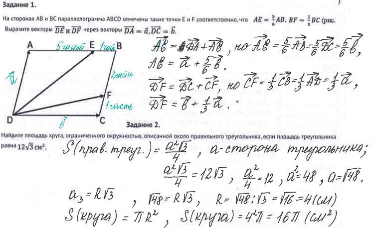 Разложение векторов по правилу треугольника